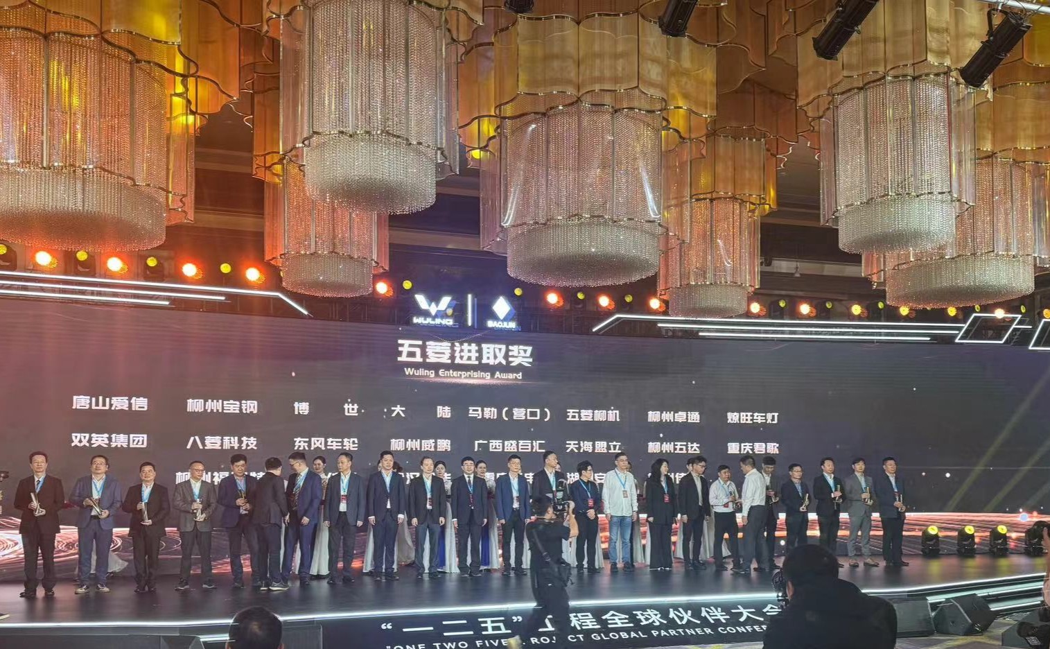 2024年3月28日,上汽通用五菱汽車股份有限公司召開了的主題為“擁抱新變化 共創新可能”的2024年“一二五”工程全球伙伴大會,此次大會匯聚了眾多業內領軍企業,安達股份作為上汽通用五菱多年來的資深合作伙伴,受邀參加本次會議,憑借產品優質、技術創新榮獲2023年“五菱進取獎”,公司總經理助理、銷售總監張尹(圖右二)代表公司上臺領獎。
